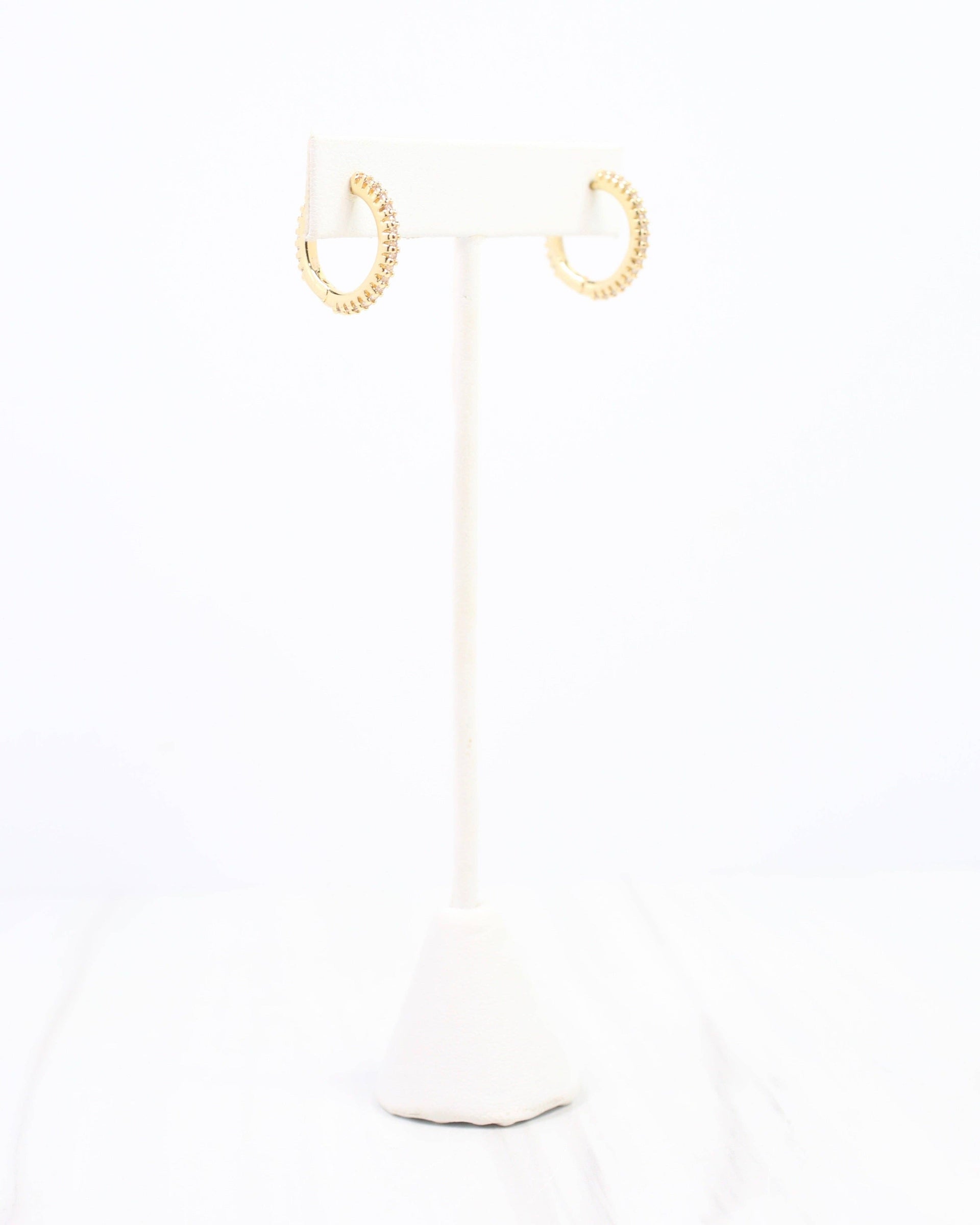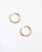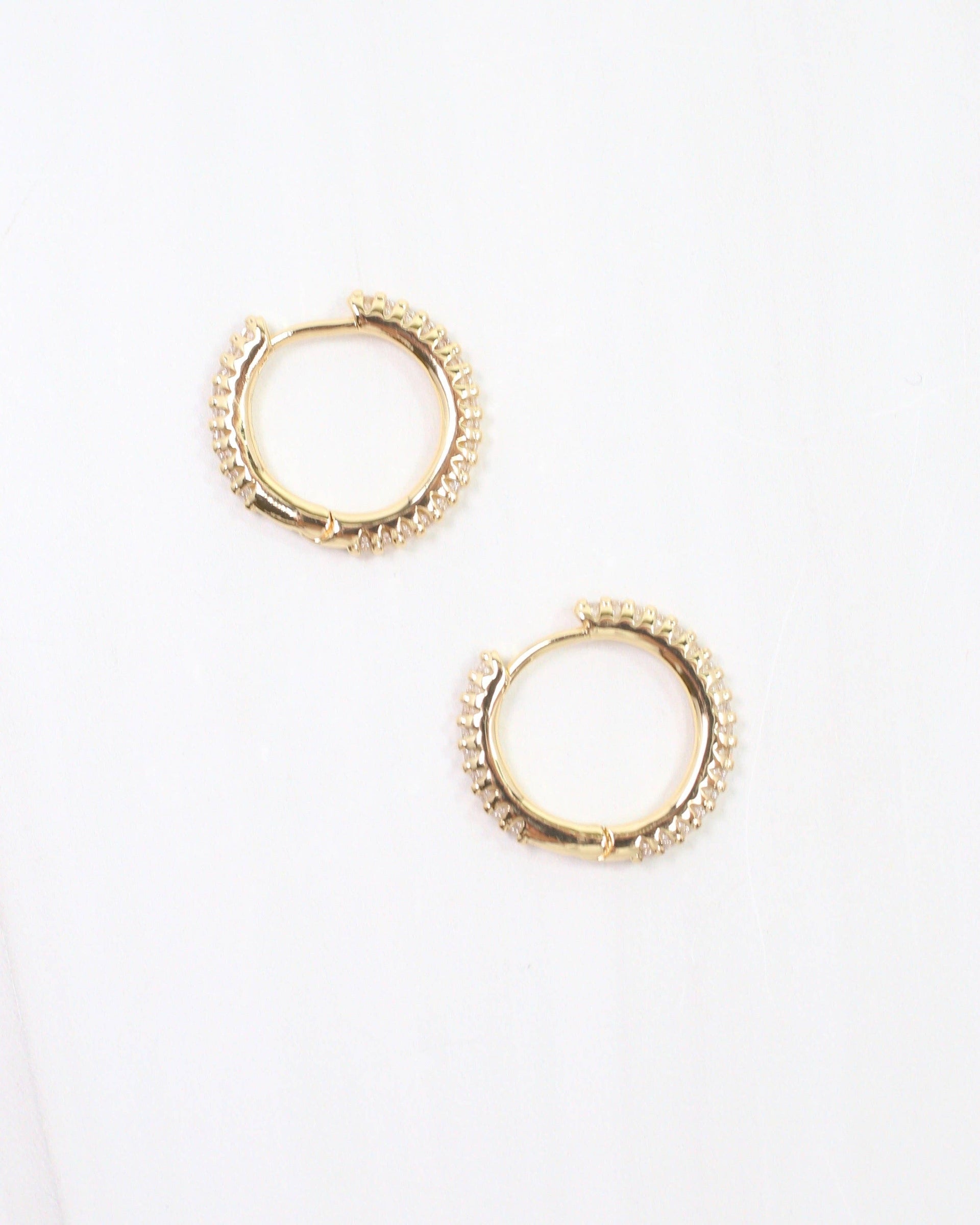 Add a dash of sparkle with the Annalise Pave CZ Hoop Earrings in Gold! These slim, hinged hoops are dipped in gleaming gold and lined with dazzling CZ stones that shimmer all the way around. Perfect for adding a little shine to your day or night look, they’re delicate yet eye-catching—making them your new go-to hoops for effortless glam.