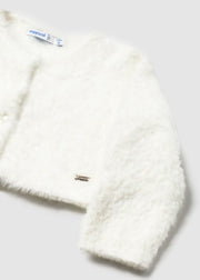 This long-sleeved baby cardigan features button fastenings down the front for easy dressing and removal. Crafted with a soft, smooth faux fur outer fabric, it offers gentle warmth and a cozy feel, making it an ideal layering piece for delicate skin. Its expert design ensures comfort and style suitable for everyday wear or special occasions.