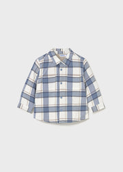 This Baby Plaid Overshirt combines classic style with comfortable design, featuring a soft 100% cotton exterior and a gentle polyester lining for added warmth. The long sleeves and traditional shirt collar provide a timeless look, while button fastenings down the front ensure easy dressing. Functional front pockets add practicality, making this checked-pattern overshirt perfect for layering and everyday wear in cooler weather.
