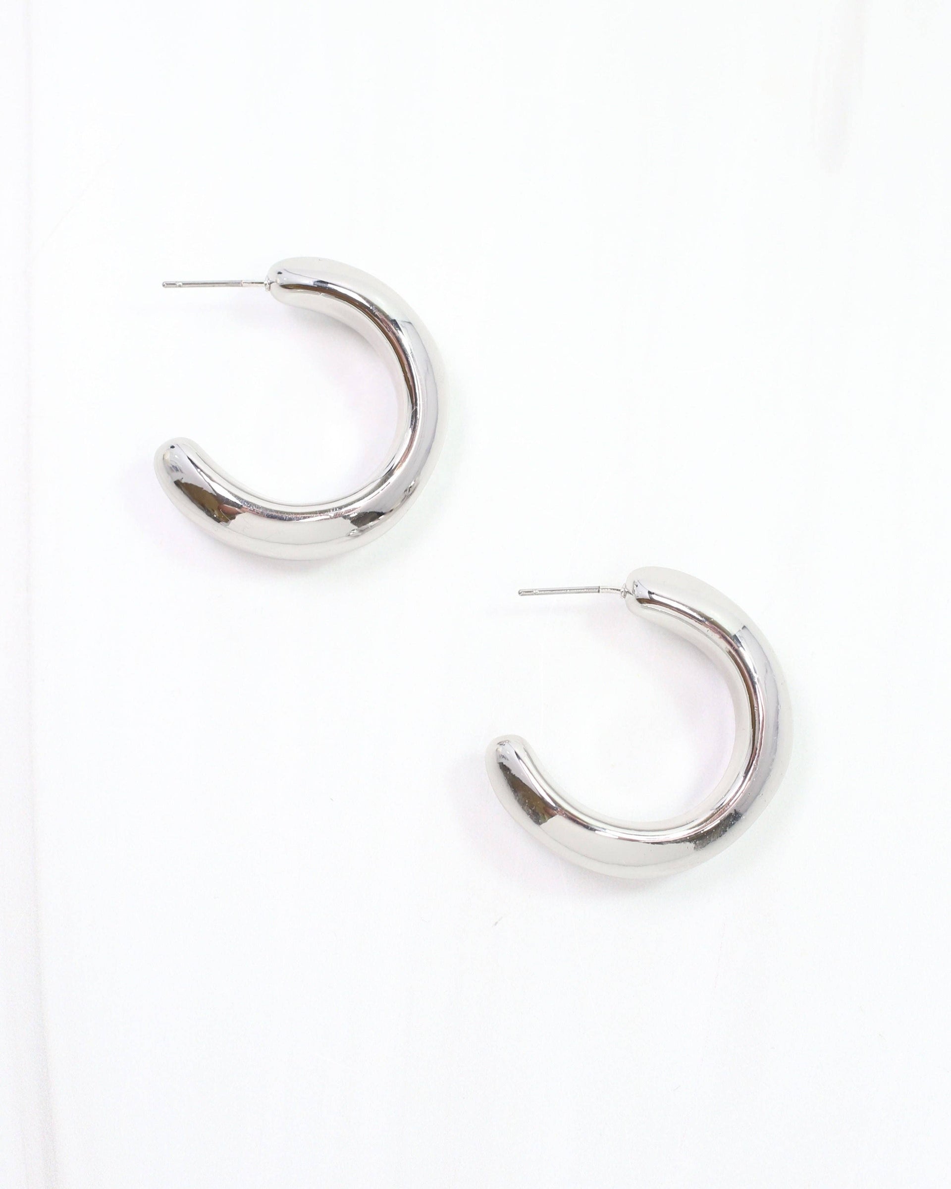 Add a splash of fun to your everyday look with the Callen Wavy Hoop Earring in Silver. These shiny, wavy tube hoops bring a playful twist to a classic style, making them perfect for any occasion. Dimensions: * 1.25" Diameter * .25"