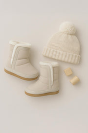 The Cozy Cuff Soft Sole Boots in Taupe are the perfect blend of warmth and style for chilly weather. Featuring a soft faux fur lining and a roll-down cuff, these boots offer a cozy, timeless look. The flexible soft sole allows your little one to move freely while staying warm, making them ideal for both indoor comfort and light outdoor adventures.