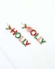 The Deck the Halls Holly Jolly Earrings in multicolor feature a vibrant holly berry stud with a playful dangling "Holly Jolly" charm in glittered pink, red, and green enamel. These festive earrings add a stylish and cheerful accent to your holiday ensemble. Dimensions: * 2" Length * .4" Width