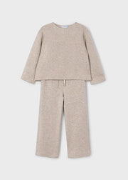 This baby girl 2-piece tracksuit combines comfort and practicality in a stylish rose hue. The long-sleeved sweatshirt features elasticated cuffs, a round neckline, and a side press-stud fastening for easy dressing. Both the sweatshirt and pants are made from warm, knitted, quilted fabric, providing cozy insulation. The pants include an elastic waistband and elasticated hems to ensure a secure and comfortable fit, perfect for your baby’s active moments in cooler weather.