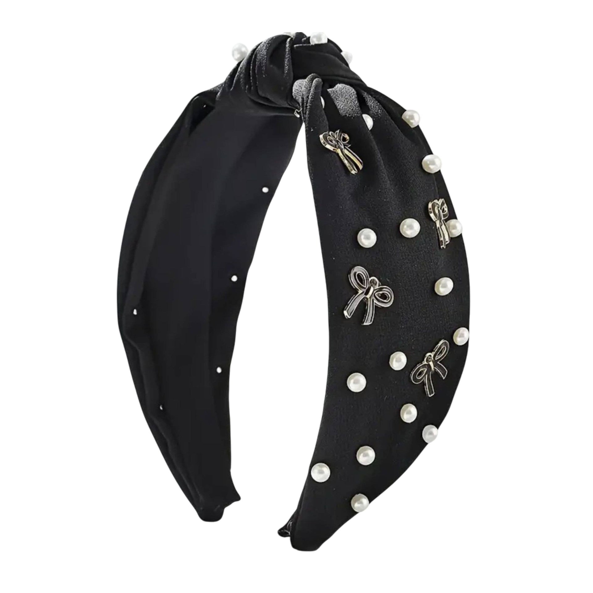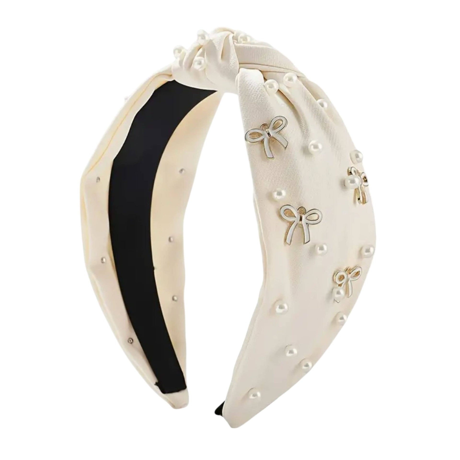 Hair Bow Knot Headband Pearl & Resin Bow Accent Holiday