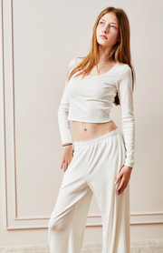 Introducing the sweetest addition to your closet! This gorgeous long sleeve showcases intricate heart pointelle paired with the most adorable pink lace trim. The soft white base with delicate pink accents creates a charming contrast that's perfect for layering over basics or wearing solo. Style it with your favorite jeans, cozy sweats, or coordinate with our matching bottoms for a put-together look. Wear it anywhere, anytime—this piece is pure magic. Not intended for sleepwear.