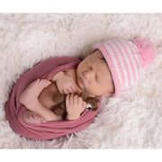 This newborn pom pom beanie is expertly hand-knit from 100% cotton, providing gentle warmth and comfort for your baby’s delicate head. Designed with a roll-up brim, it allows for a slight adjustment to fit most newborns perfectly. Ideal for capturing first portraits or as a thoughtful gift for baby showers and hospital visits. Available in soft Baby Pink or Baby Blue, this hat combines quality craftsmanship with practical sizing. Cold handwash recommended to maintain its softness and shape.