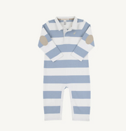 Sir Proper's Rugby Romper | Barrington Blue Stripe with Keeneland Khaki Stork