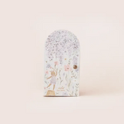 Each Tiny doll comes nestled in a Tiny home, with breathtakingly hand painted watercolor wildflowers and an antiqued bronze door knob that opens to a magical night scene full of twinkling copper foil stars. Collect all 6 to create a beautiful enchanted meadow!