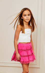 Introducing Sofia—the mini skirt that's absolutely everything! Adorned with charming heart and bow lace trim, this piece is destined to become your forever favorite. The delicate detailing adds a touch of whimsy and romance to any outfit. Style it with our cut-out heart tank top or a classic tube top for an effortlessly cute look. Fair warning: your friends will definitely want to borrow this one! A timeless mini that delivers on both style and comfort.