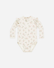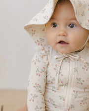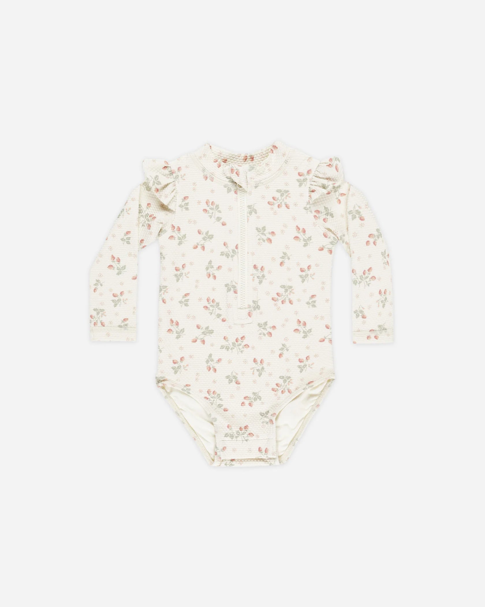 This one-piece rashguard swimsuit will have your little one protected from the sun in style. Featuring a front zipper closure and ruffle detail at the shoulders.