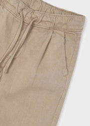 Designed for comfort and style, these Boy Chino Jogger Pants feature a relaxed fit that is baggy at the top and tapers neatly toward the ankle. The adjustable elastic waistband includes internal buttons and a drawstring to ensure a personalized and secure fit. Pleated detailing adds a refined touch, making these joggers perfect for everyday wear while maintaining a tailored look.