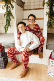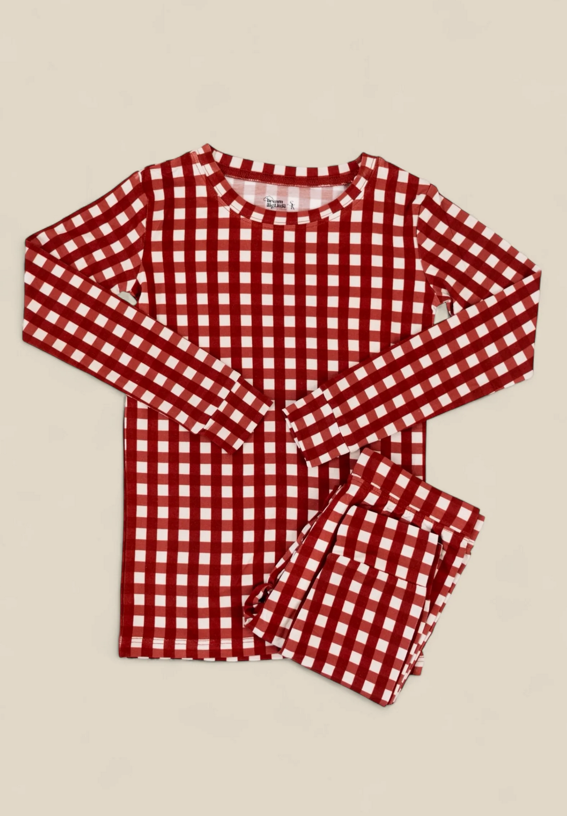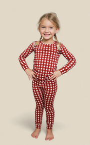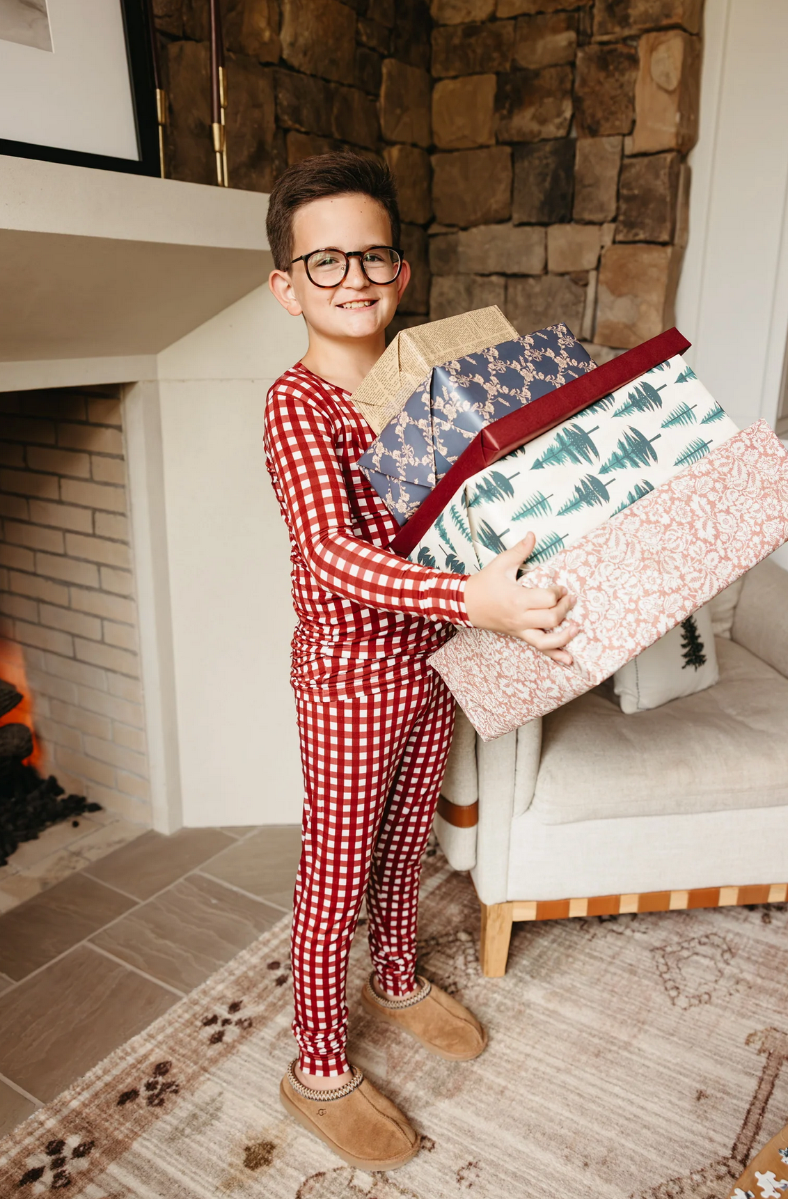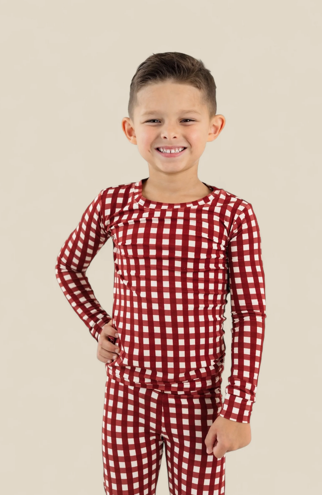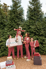 Cozy up in timeless tradition with the Peppermint Plaid Dream Set! Featuring a rich burgundy tartan print and crafted from buttery-soft fabric, this long sleeve and pants pajama set is perfect for fireside stories, cocoa sipping, and all your favorite holiday traditions. With a classic look and ultra-comfy feel, it's a must-have for festive mornings and picture-perfect family moments.