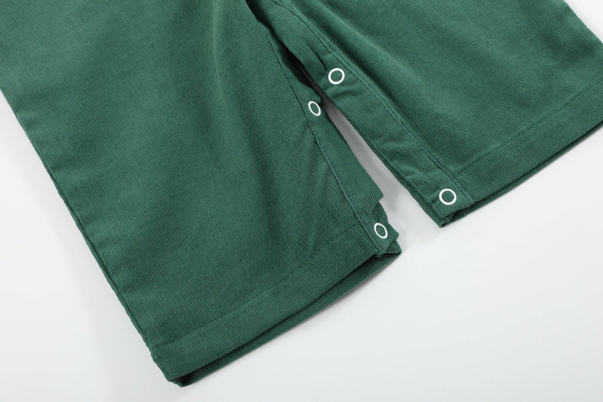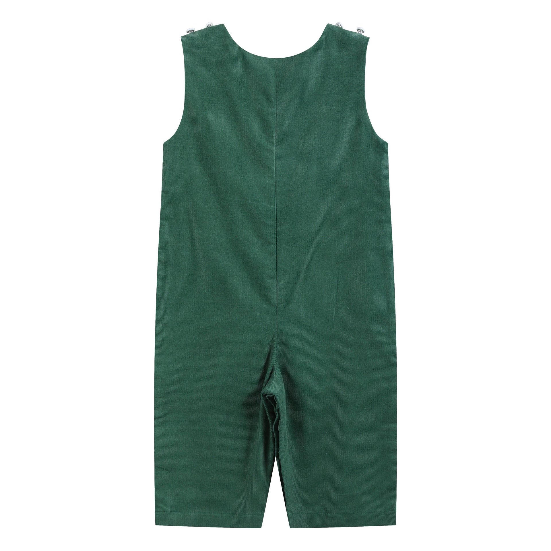 Elevate your little one's Christmas style with charming overalls featuring sweet smocking on the chest and embroidered Santas. Embrace the festive spirit with this delightful ensemble, perfect for creating cherished holiday memories. Snaps at the crotch make sure diaper changes will be a breeze and made in 100% soft cotton to ensure he is comfortable all day long. The perfect look for creating cherished holiday memories.