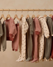 Long sleeve snap footie with hidden snap front placket in our velour fabric.