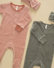 Long sleeve snap footie with hidden snap front placket in our velour fabric.