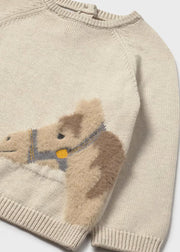 Crafted for comfort and ease, this baby unisex sweater includes raglan sleeves and a round neckline for a gentle fit. Button fastenings down the back allow straightforward dressing and removal, while a finely embroidered horse motif on the front provides a subtle, elegant detail.