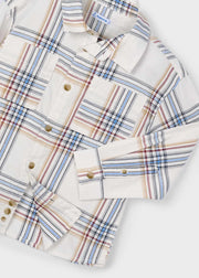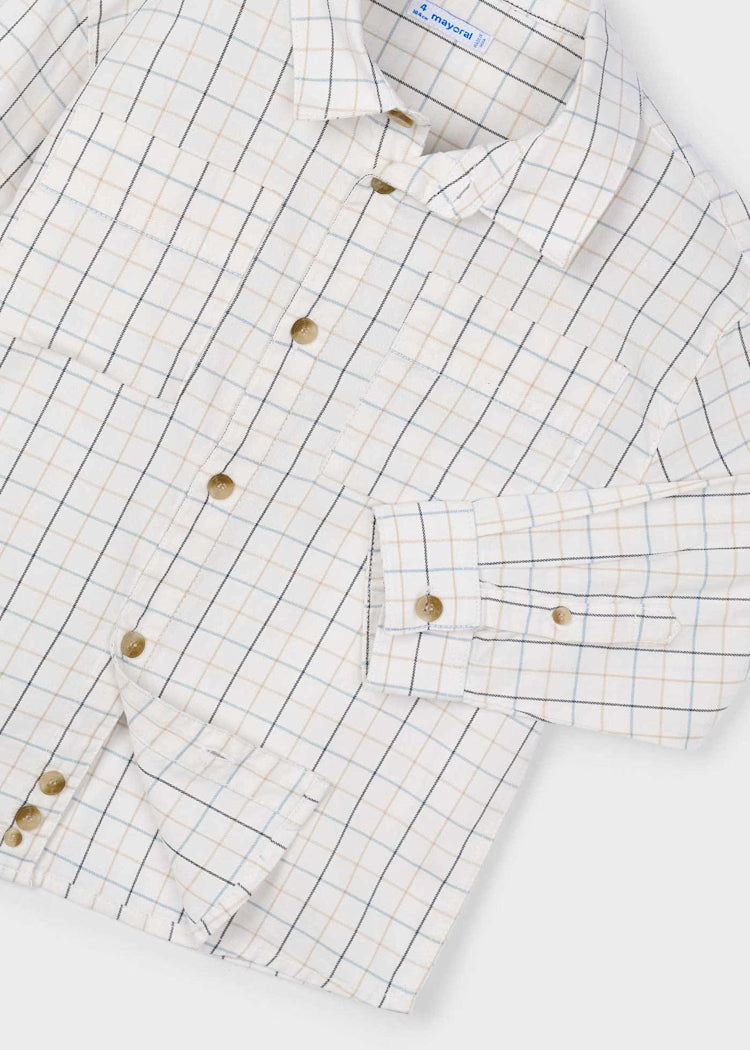 Crafted from 100% cotton viyella fabric, this boy’s long sleeve plaid shirt offers warmth and softness for comfortable wear. It features a classic shirt collar and button fastenings down the front for secure closure. Practical front pockets add functionality, while the timeless checked pattern enhances style, making it a versatile and enduring addition to any young boy's wardrobe.