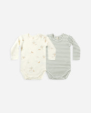 Set of two coordinating long sleeve one pieces made from our velvety soft organic brushed jersey, featuring shoulder and bottom snaps for easy changes.