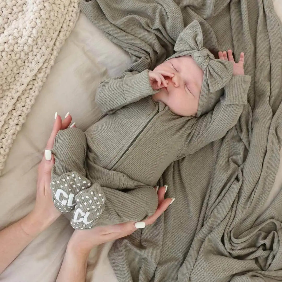 One-Piece Footie Details: * 95% Bamboo Viscose | 5% Spandex * Footed One-Piece with Zipper and Grips * Double-zipper style for easy diaper changes * True-to-size (4 sizes available) * Includes: 1 Zipper Footie (Accessories sold separately)