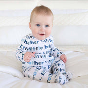 Treat your little one to the softest, most adorable footie, perfect for sibling snuggles and bedtime fun! This Little Brother baby zipper footie is not only cute but also incredibly cozy, featuring a bold and playful text print that celebrates your family's newest addition. Made from dreamy bamboo viscose fabric, it keeps your baby at the perfect temperature all night long, making it ideal for all seasons. The full-length double zipper makes dressing and diaper changes easier than ever. Whether for sibling matching or solo snoozing, this footie pajama is a must-have for your little brother’s wardrobe! Pair it with our Big Brother, Big Sister, or Little Sister pajamas for the ultimate sibling set.