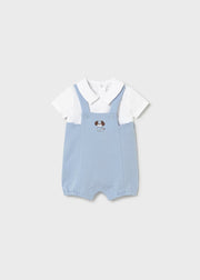Adorable newborn romper featuring an adorable puppy design that's perfect for little ones who love all things cute and cuddly. Crafted from a soft cotton-elastane blend, this romper offers gentle comfort and just the right amount of stretch for active babies. Convenient snap closures make diaper changes quick and easy, while the breathable cotton lining keeps skin happy all day long. An essential piece for any newborn boy's wardrobe!