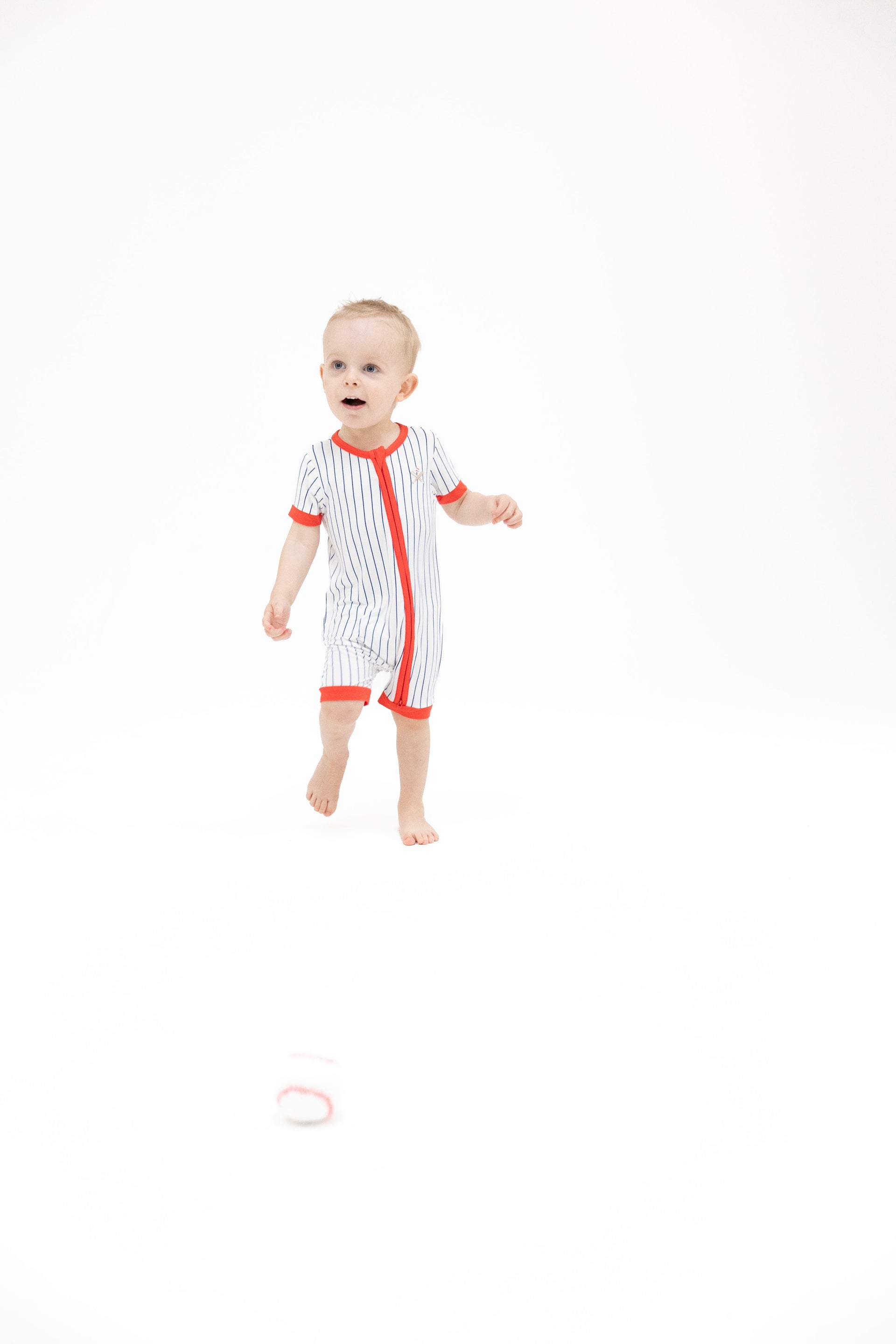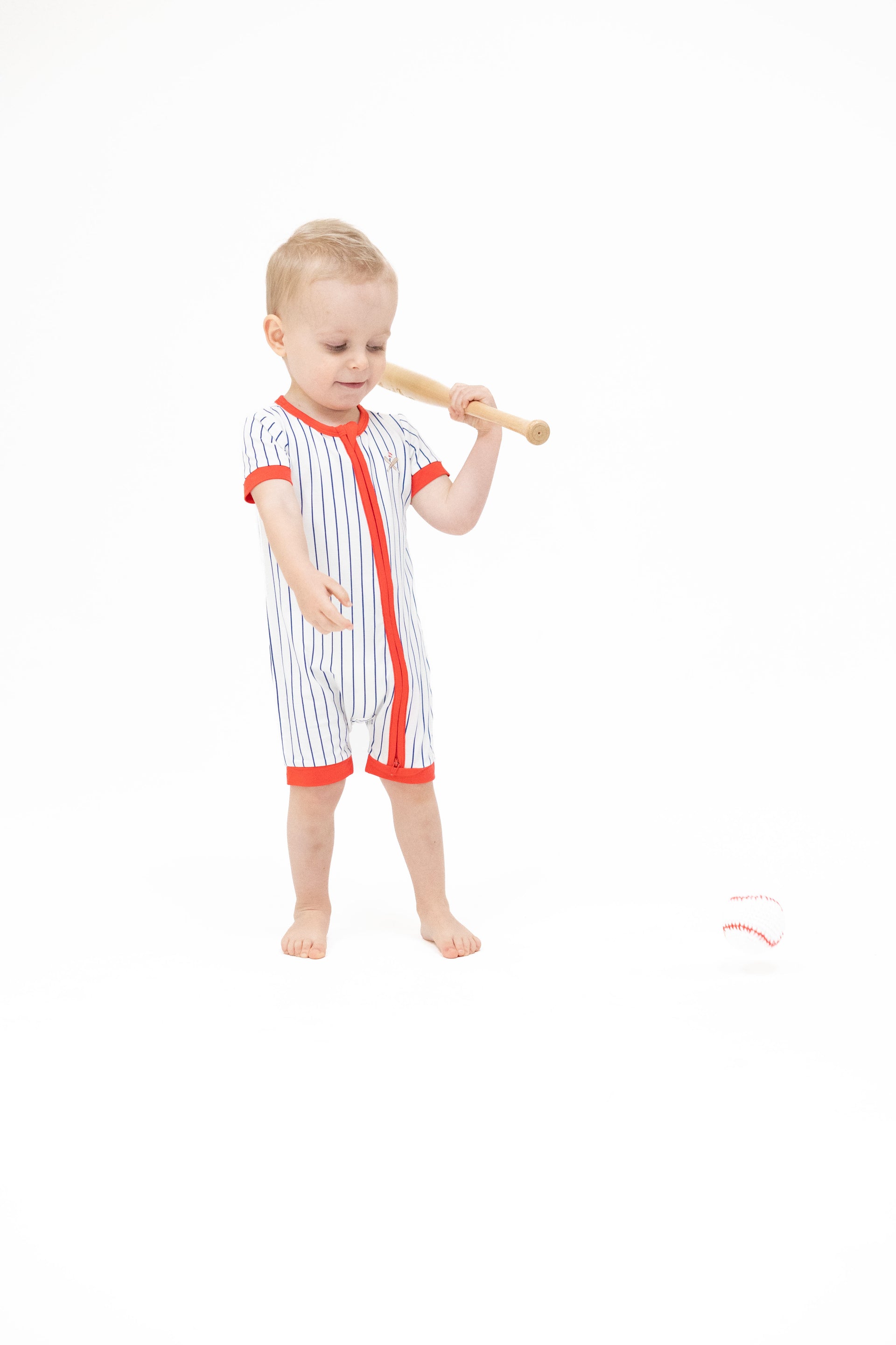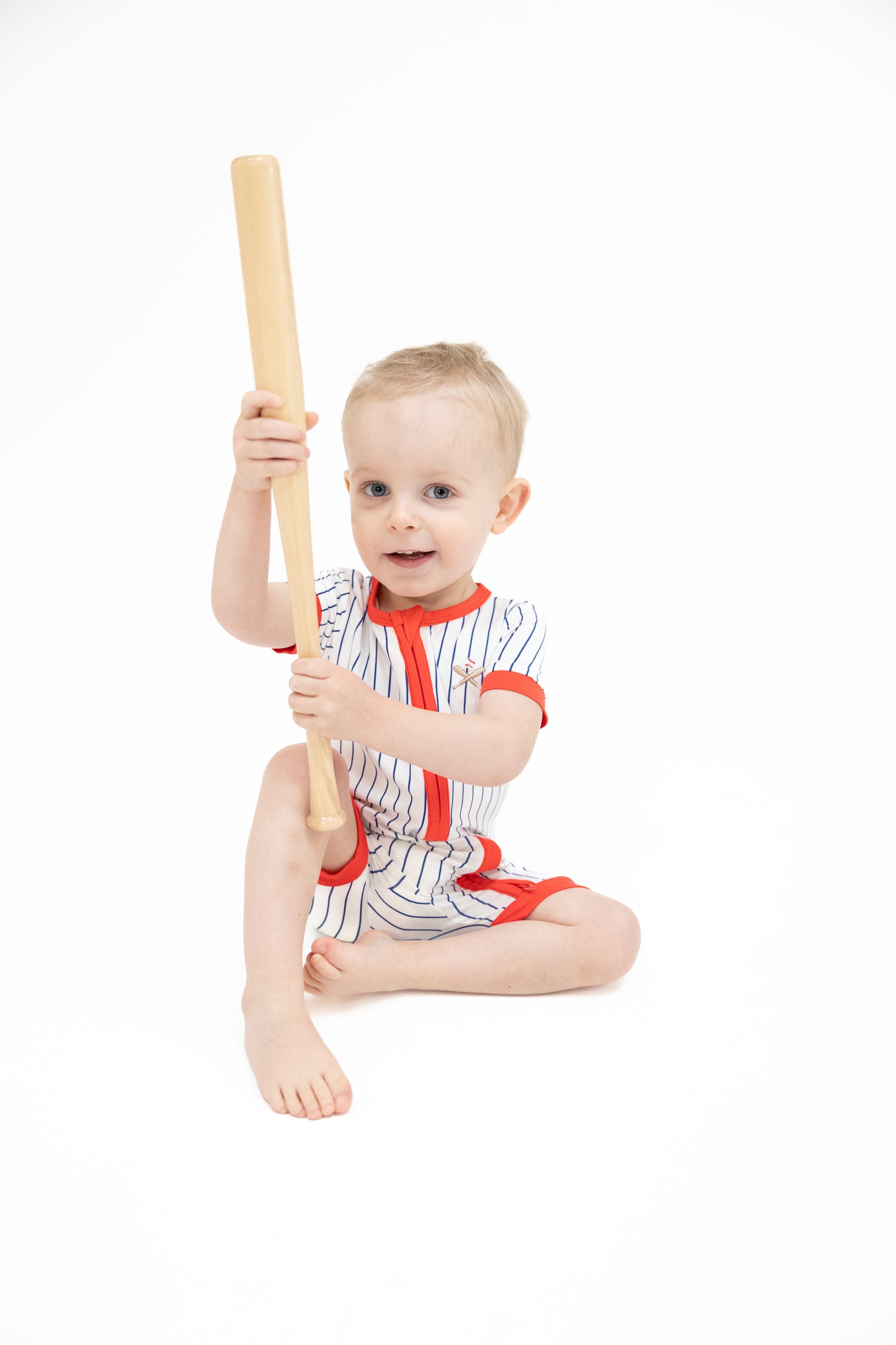 Hit a home run on comfort with our Shortie 2-Way Zipper Romper, featuring playful baseball and bats embroidery. Crafted from ultra-soft Viscose from Bamboo, this cozy romper is designed for both comfort and convenience. The two-way zipper makes dressing and diaper changes quick and easy, keeping your little one comfy all day long.