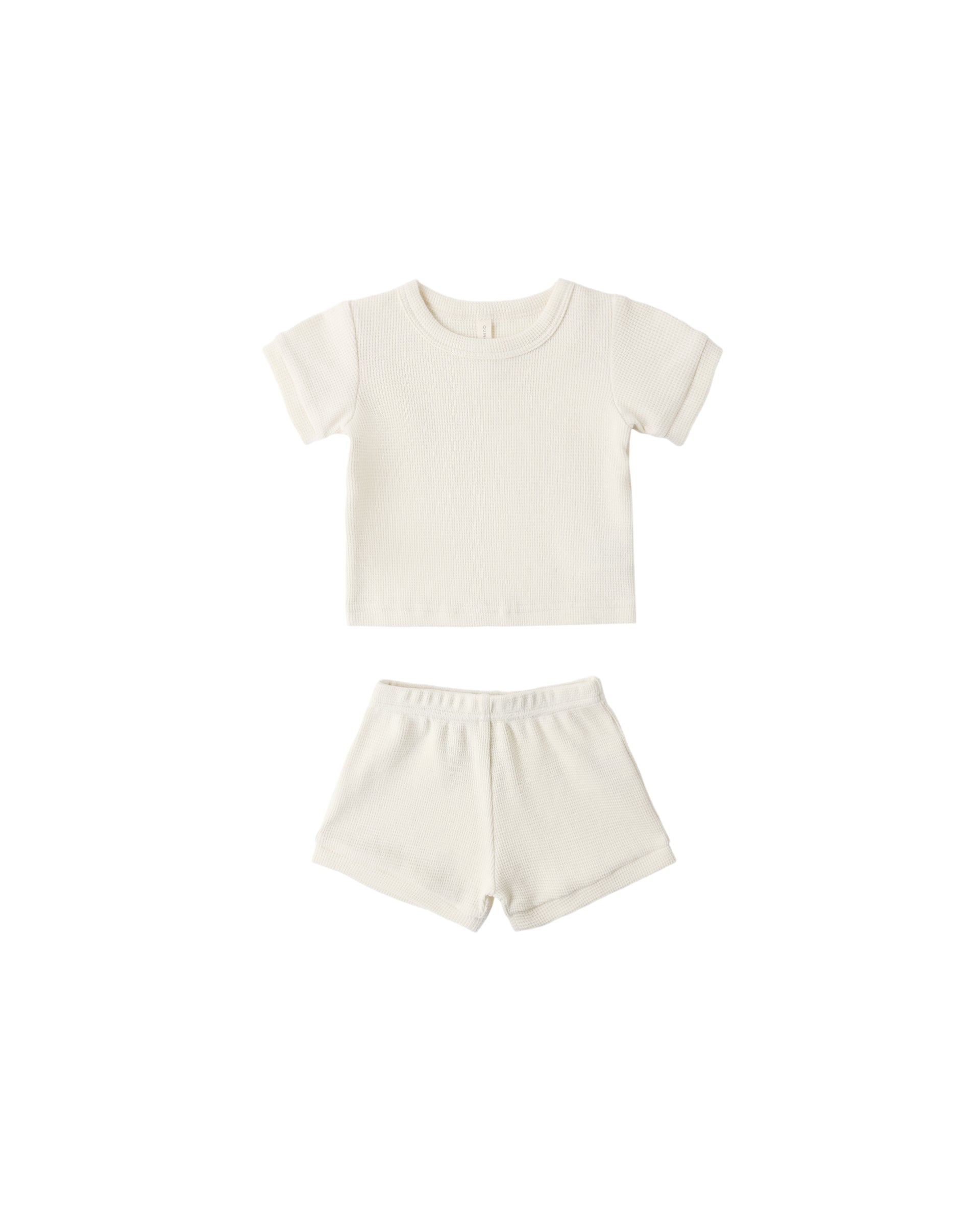 Our Waffle Shortie Set is the perfect set for your little one this summer! Featuring a waffle tee and matching shorts with elastic waistband.