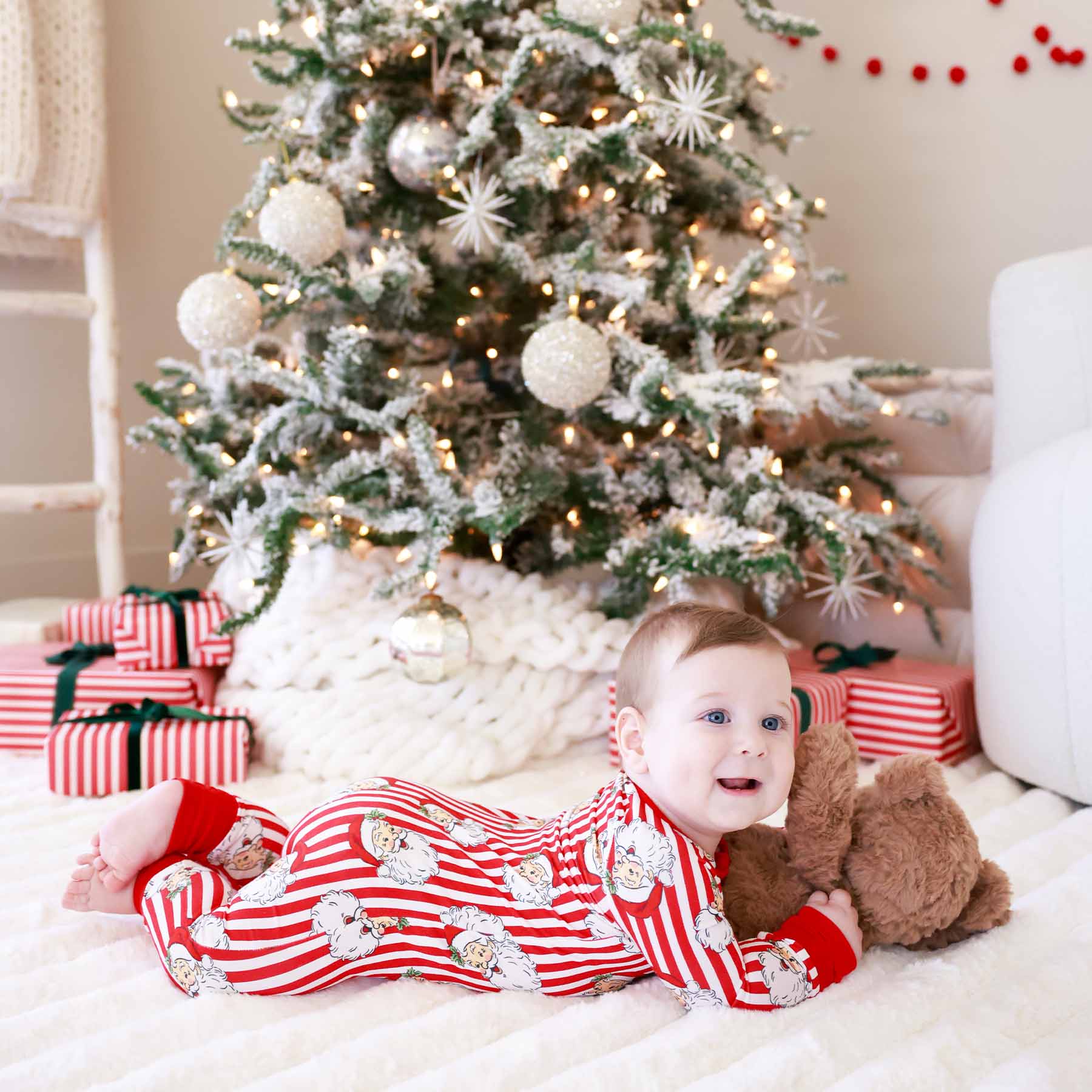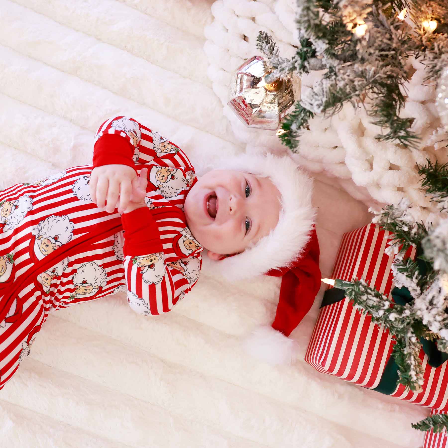 Care Instructions: * Machine Wash Cold - Gentle Cycle * Phosphate Free Detergent Recommended for Color Care * Wash with like fabrics (bamboo only) * Layette should be washed inside out * Line Dry / Air Fluff * Do NOT use Fabric Softener Step into holiday magic with our Santa Claus Lane Convertible Zip Romper, where cozy comfort meets Christmas cheer!