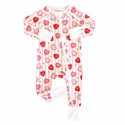 Dress your little one in pure sweetness with this adorable convertible zip romper featuring soft pink stripes and colorful candy heart details. Crafted from 95% bamboo viscose and 5% spandex, it's incredibly soft and gentle on delicate skin. The double zipper design makes diaper changes and dressing a breeze, while flip mitts and footies (up to size 6-12 months) keep tiny hands and feet cozy. True-to-size with extra length to grow with baby, this romper is as practical as it is precious.