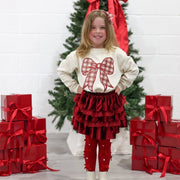 Twirl into the holiday spirit with this stunning Ruby Red Velvet Tiered Christmas Tutu! Crafted from luxuriously soft velvet with a matching elastic waistband, this festive skirt is perfect for Christmas celebrations and dress-up fun. The magic is in the details: ultra-soft tulle that feels gentle against skin, a cozy cotton lining for extra comfort and coverage, and "shed-free" embellishments that keep the glitter where it belongs—on the tutu, not around your house! Simply hand wash and line dry to keep it looking merry and bright season after season.