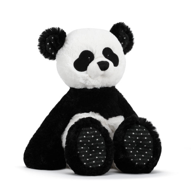 Pita the Panda Plush is a great gift for any child who could use a snuggler and a friend. As part of the Black and White Collection, this cuddly friend also encourages brain stimulation. Makes a great gift along with coordinating Pita the Panda chair and Pita the Panda blankie. Made of soft polyester knit in a black and white pattern with polka dot accented feet and eyes and a satin thread nose.