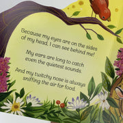 • Shaped board book with thick pages perfectly sized for little hands and fingers to turn the pages and read along.