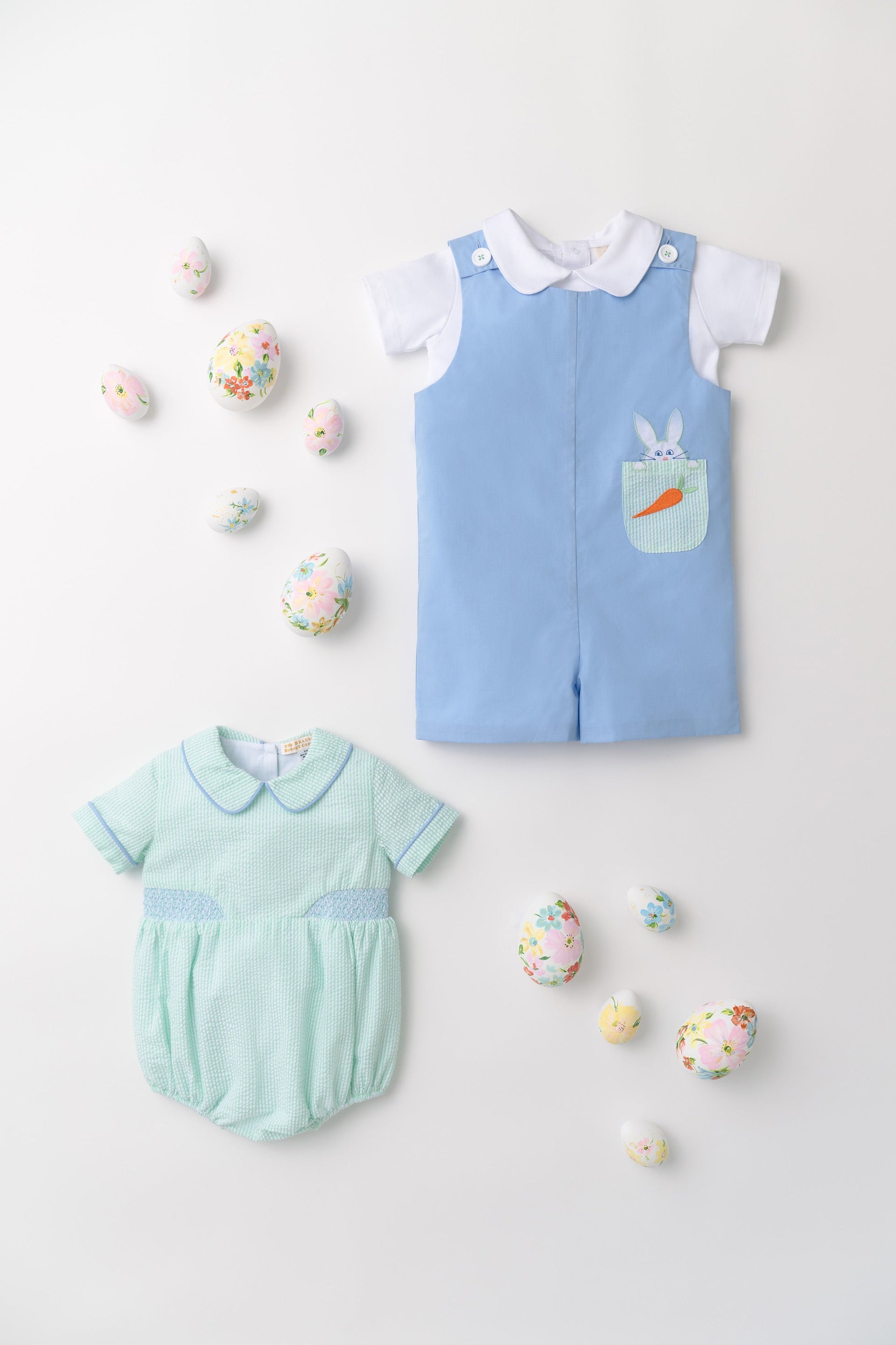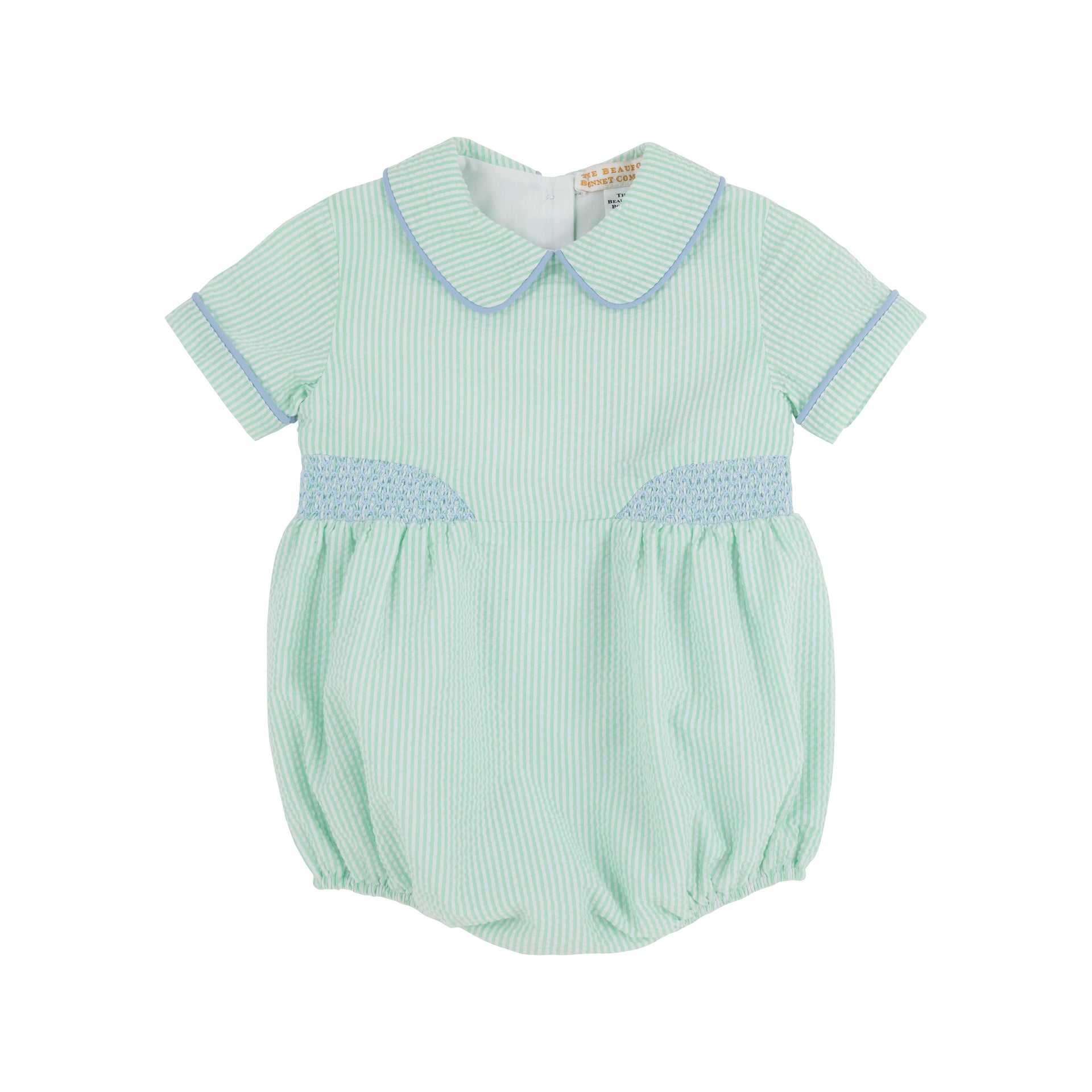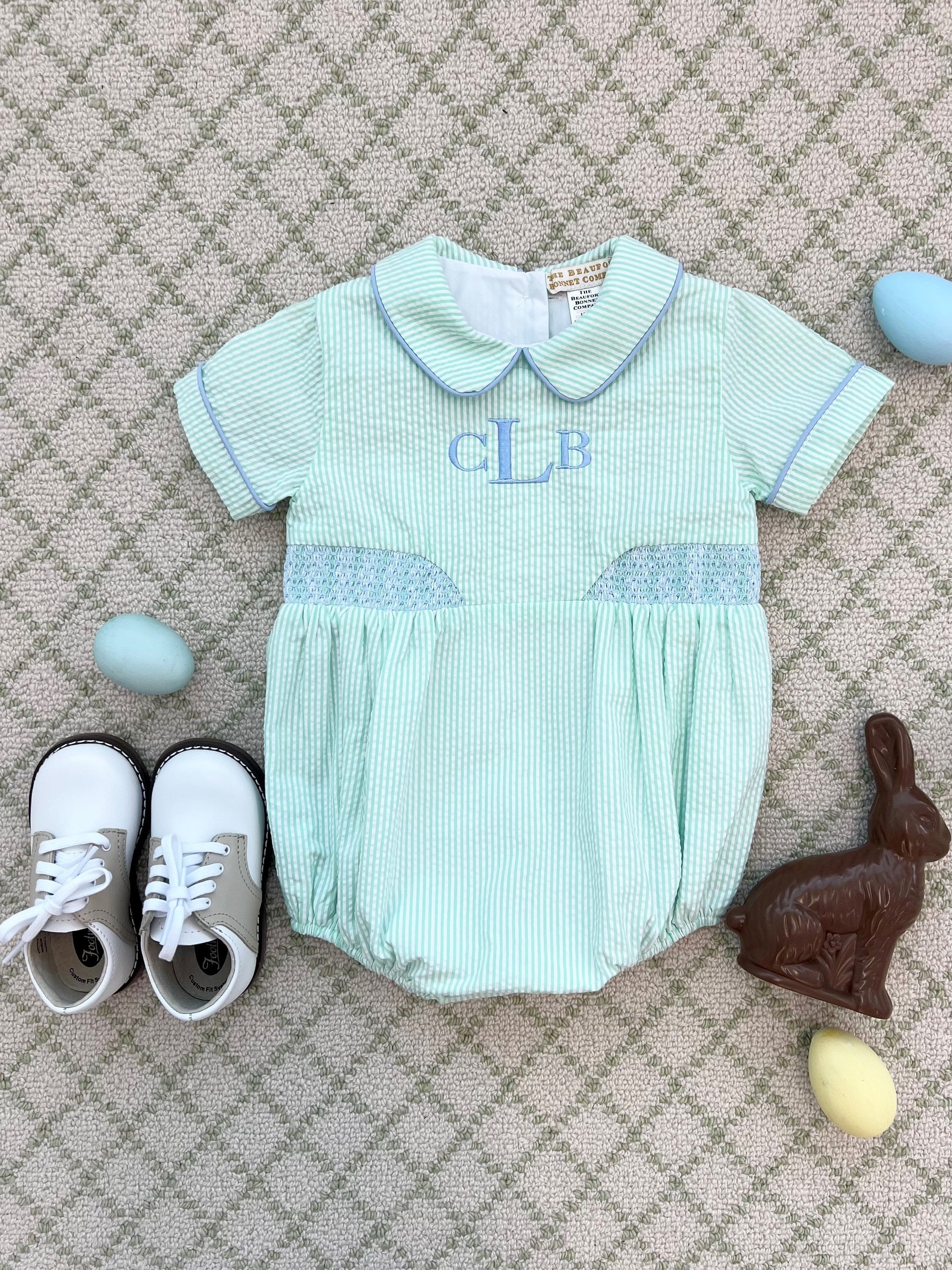 You'll love seeing your little guy in our Brentley Bubble! Featuring Grace Bay Green Seersucker with Worth Avenue White and Beale Street Blue, this is such a darling little piece. We love the classic, vintage feel of this bubble.