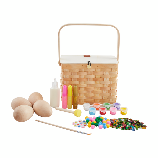 This charming woven wood Easter basket is the perfect addition to your holiday festivities, offering endless creative possibilities for children and families alike. Crafted from high-quality pine wood, the basket exudes a rustic charm that complements any Easter celebration. Inside, you'll find four beautifully smooth wood eggs, ready to be transformed into colorful masterpieces. The set includes a delightful assortment of decorating materials, such as vibrant paints, fluffy pom-poms, sparkling glitter, and shimmering gems, allowing for a truly personalized touch. Designed for ages 3 and up, this Easter basket encourages imaginative play and artistic expression, making it an ideal gift for young crafters. Whether used as a centerpiece or a fun activity, this basket promises to bring joy and creativity to your holiday season.