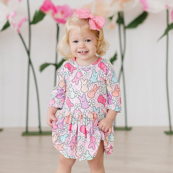 This Hangin' with my Peeps Twirl Bodysuit by Mila & Rose is the perfect addition to your little one's Easter wardrobe. Made with high-quality material, it features a fun and colorful design that is sure to catch everyone's attention. Its comfortable fit and twirl-style design make it perfect for playtime and everyday wear. Get ready for an adorable and stylish look!