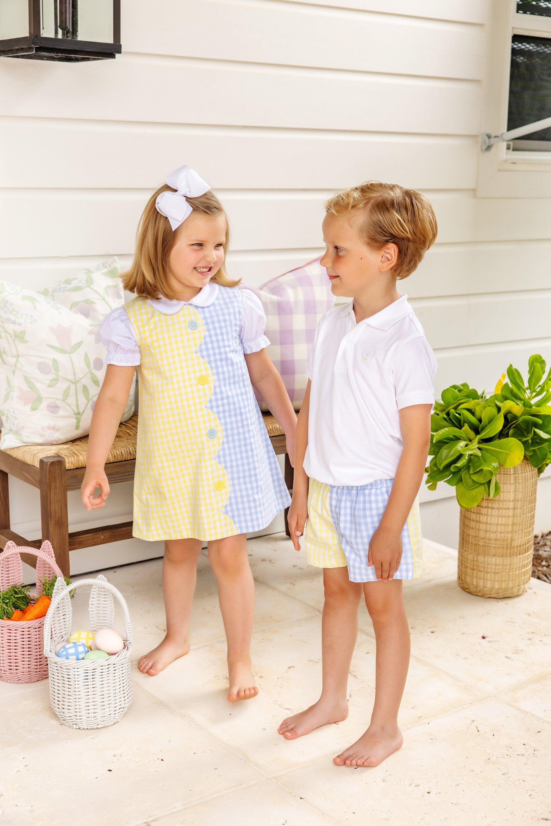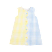 Our Kennedy Colorblock Dress is just darling! Featuring Lake Worth Yellow and Buckhead Blue Gingham and scallop details, she is sure to look as sweet as can be.