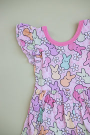 Get ready for a quirky and fun Easter with the Peeps For Daisies Dream Bodysuit Dress. Made from soft bamboo material, this unique dress doubles as a bodysuit for sensitive skin. With peeps on top and an Easter egg hunt outfit below, it's the perfect playful outfit for the occasion. Hop on over and get yours today!