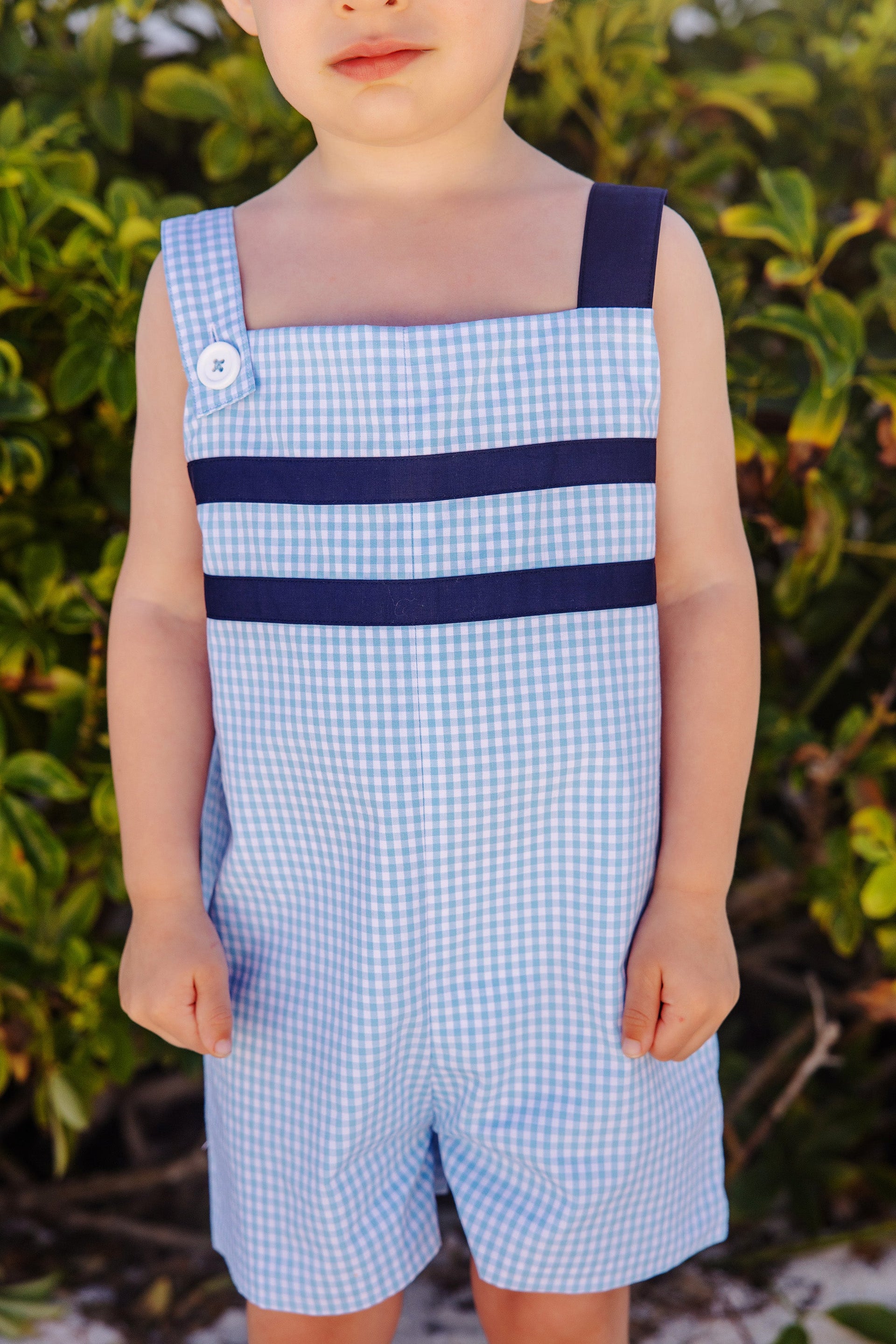 The Teddy's Jon Jon in Brookline Blue Mini Gingham is an must add-to-buggy piece! The Nantucket Navy stripes add a special touch to this classic style.