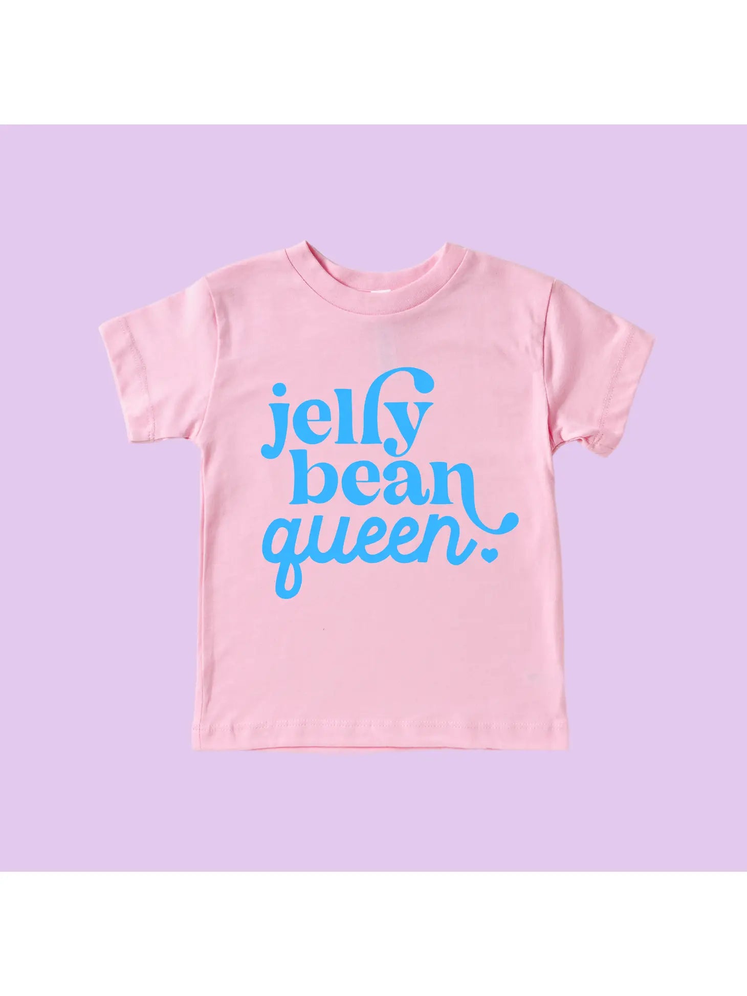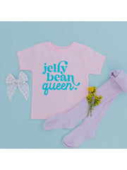 Designed with comfort and style in mind, our Jelly Bean Queen T-shirt is perfect for your little one. Made with soft, 100% cotton fabric, this crewneck t-shirt features short sleeves for breathability. Available in natural, white, and pink, with a touch of poly for the Heather Yellow option. Machine washable and easy to iron, this T-shirt will quickly become a favorite for any toddler or youth.