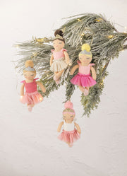 Add elegant charm to your holiday décor with these Ballerina Ornaments. Crafted from soft sweater knit fabric with hand-stitched details, each delicate ballerina features layered pink mesh tutus and a sparkling tiara. Lightweight and equipped with a hanging loop, they are easy to display on Christmas trees, gift packages, or as year-round décor in a dancer’s room. Measuring about 5 inches tall, these ornaments also make thoughtful keepsakes for dance recitals and ballet-themed celebrations.