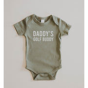 "Introduce your little one to the love of golf with our Daddy's Golf Buddy Onesie. Made from soft organic cotton, this colored onesie is both comfortable and stylish. Perfect for showing off your family's passion for the game. Order now and start bonding over golf!"