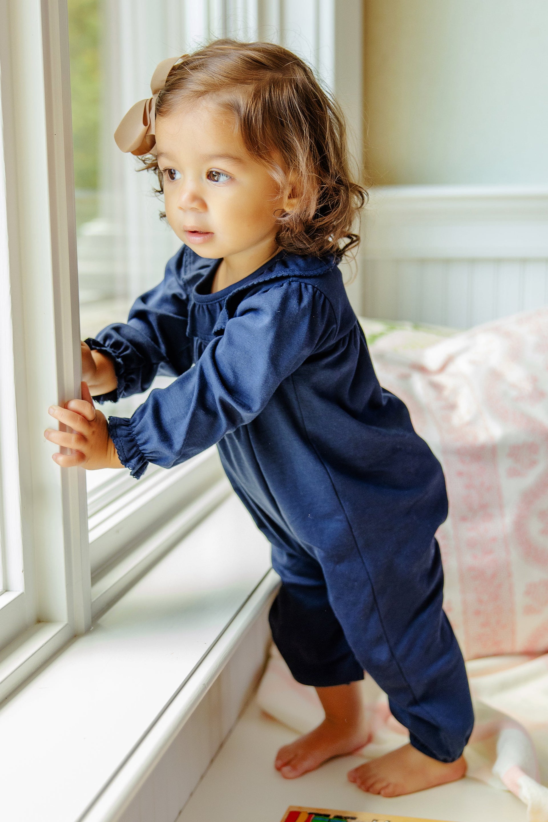 Our Ramona Ruffle Romper is perfect for play! Featuring Nantucket Navy, your little one will look oh so precious in this piece!