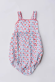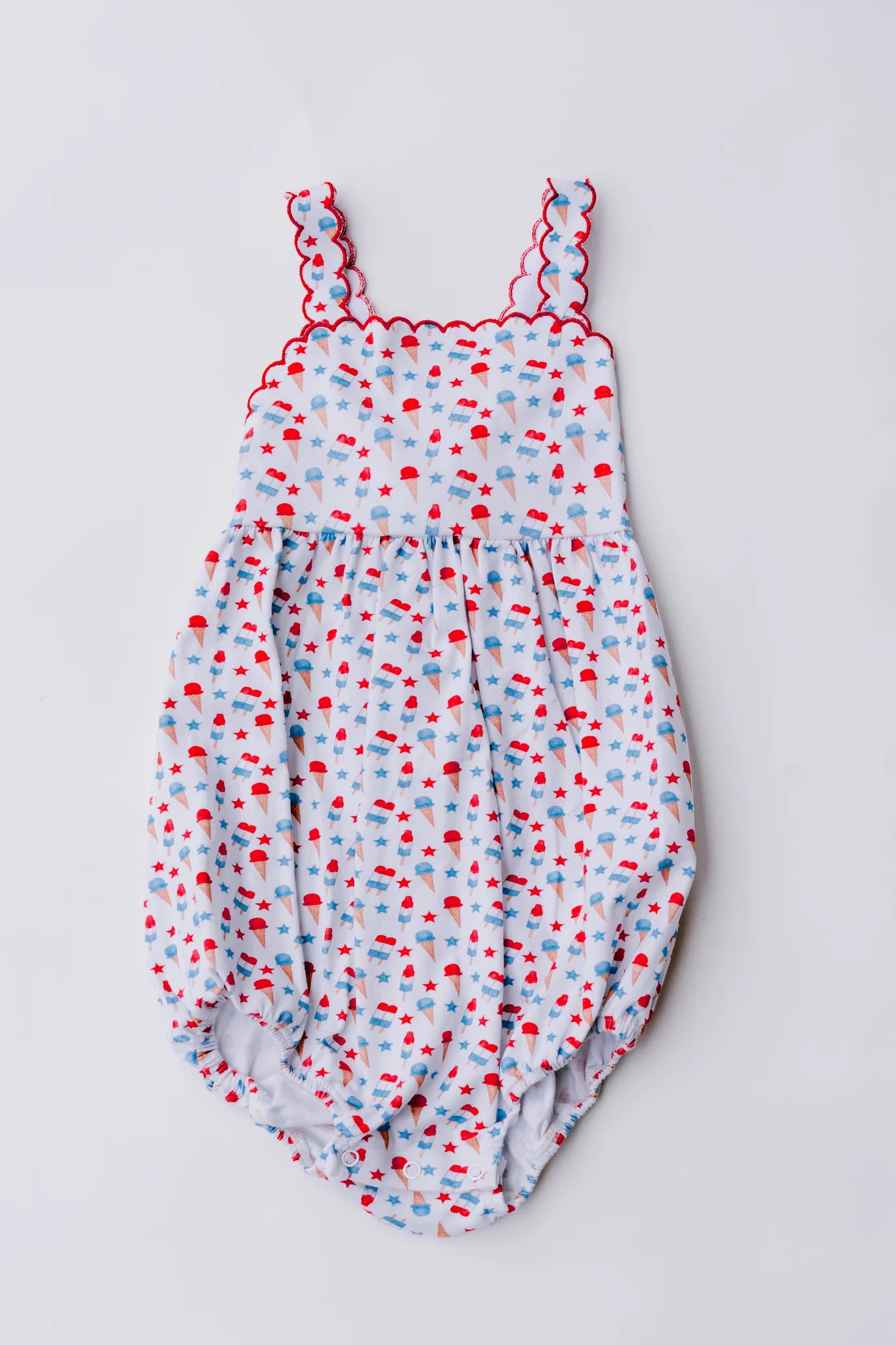 This sunsuit is perfect for your little patriot! Made with high-quality materials, it provides both comfort and protection from the sun. The vibrant red, white, and blue design will make your little girl stand out at any summer event. Show off your American pride with this stylish and functional sunsuit.