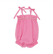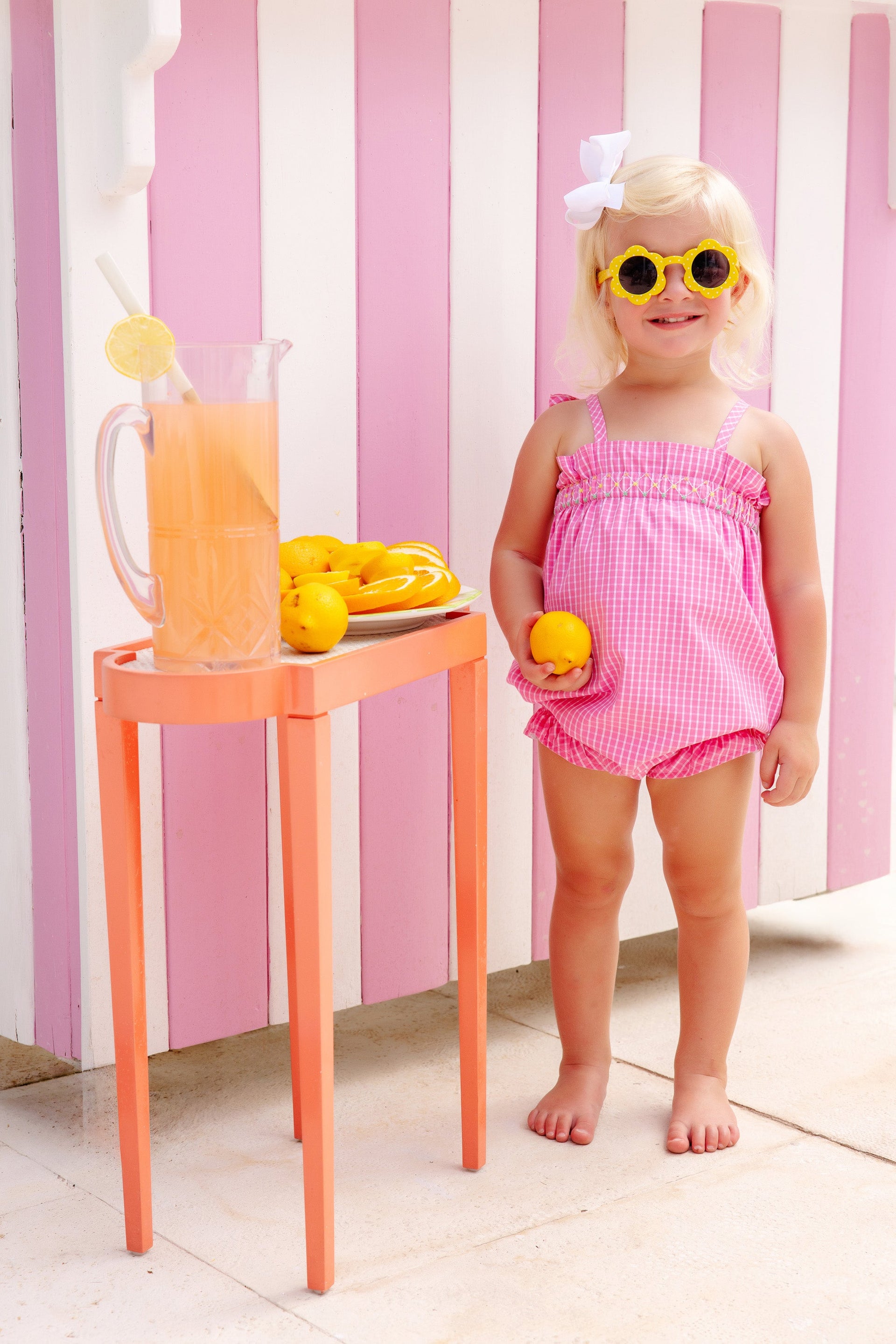 Our Rosey Romper in Pink Willow Windowpane is a summertime must-have. She'll love how comfortable she is, and you'll love its easy, no-hassle style!