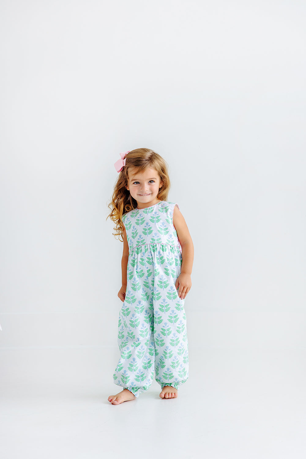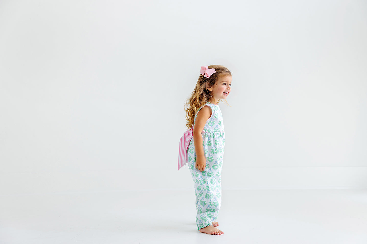 We can't get enough of this Sleeveless Rebecca Romper! Featuring Hanover Hand Block with a Pier Party Pinckney Pink Stripe Bow, it's the perfect outfit choice for playing with friends or going out and about on the town!