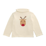 Reindeer Rollneck Toddler Sweater is a charming and cozy addition to your little one's wardrobe. Crafted from 100% cotton yarn, this sweater ensures a soft and gentle touch against your child's skin, providing comfort throughout the day. The rolled neck design adds a classic touch, while the crochet knit reindeer antlers bring a playful and festive element, perfect for the holiday season or any chilly day. Available in a large size suitable for toddlers aged 4T-5T, this sweater offers a relaxed fit that allows for easy movement and layering. Ideal for both casual outings and special occasions, this sweater combines style and warmth, making it a must-have for your toddler's seasonal collection.