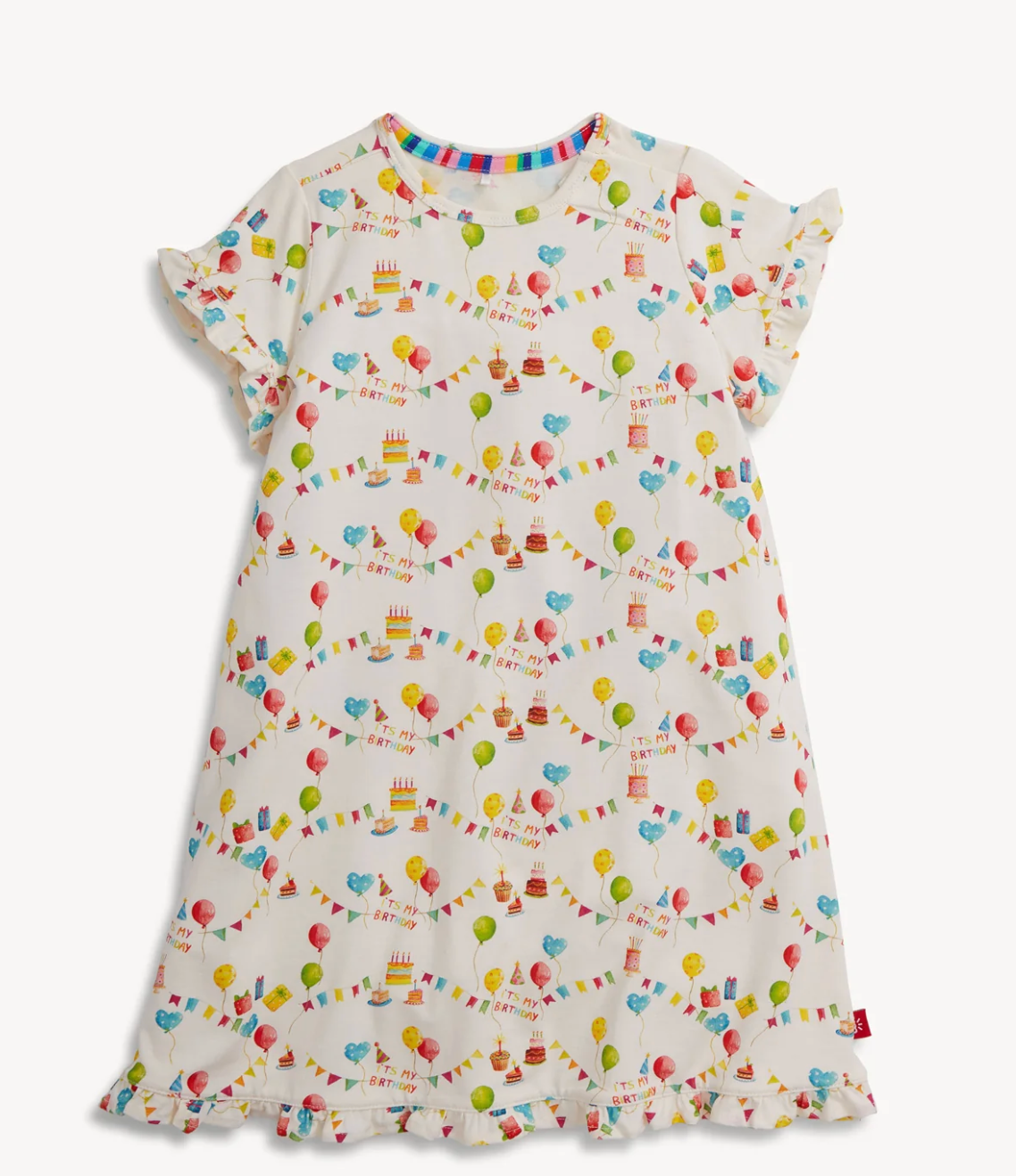 Meet the nightgown where comfort meets magic! Our short sleeve ruffle nightgown features super soft, breathable RightFit™ fabric that transforms bedtime into something truly special. The innovative SewSafe™ magnetic closure expands the neckline wide for effortless dressing. Crafted from a blend of TENCEL™ modal and naturally flame-resistant fabric—no toxic chemicals—this gown offers the perfect balance of fancy ruffles and swishy comfort. Loose-fitting and purposefully relaxed, it's designed for all-night coziness. Machine washable and built to last, this is the nightgown every little dreamer deserves.