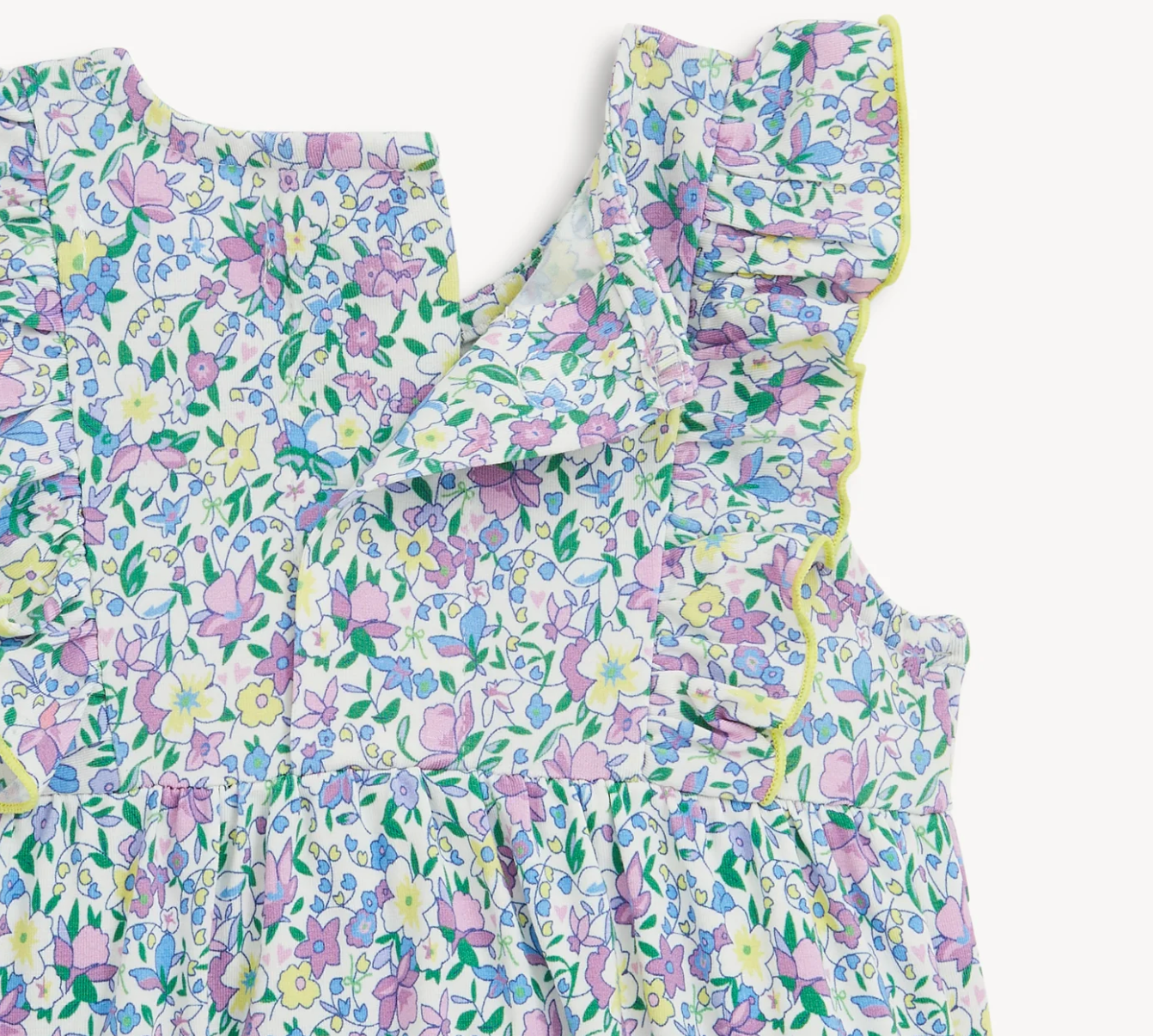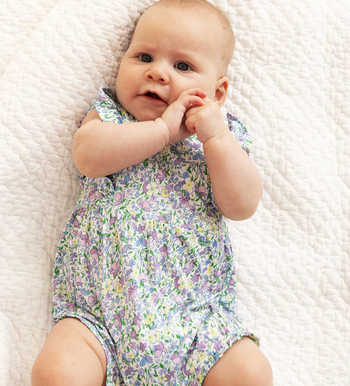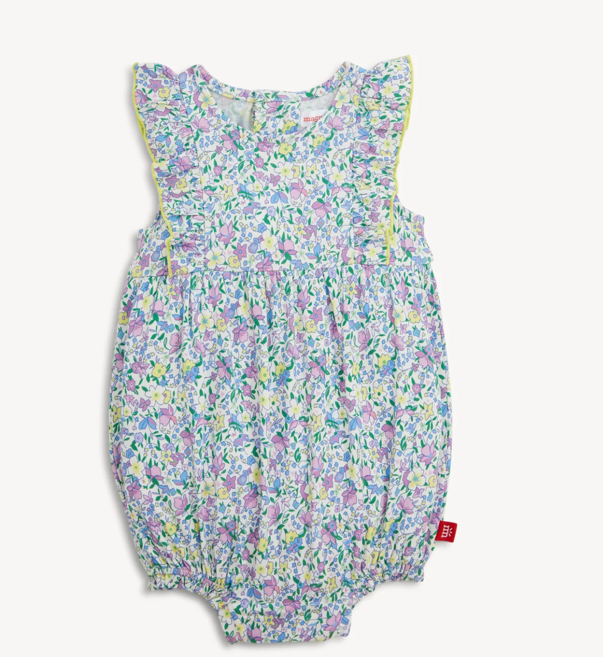 Slip into effortless spring style with our Lavinia Ruffle Bubble Romper, crafted from eco-friendly TENCEL™ modal sourced from sustainable beechwood. This silky-soft fabric keeps little ones cool and comfy while resisting pilling and fading. Our signature SewSafe™ magnetic closures at the back make diaper changes a breeze—just a swift click and you're done. The playful Lavinia pattern brings charm to warm-weather adventures, while machine-wash easy care means more time playing and less time fussing.