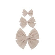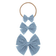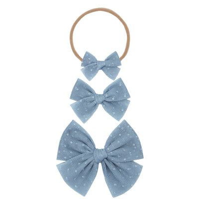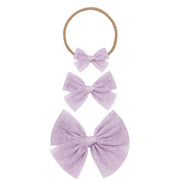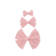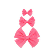 The perfect bow for your darling little girl! Each bow is hand tied by stay at home moms and is attached to an alligator hair clip. All bows are secured so they do not come undone! They are so buttery soft and add the perfect feminine touch to your little ones outfit.