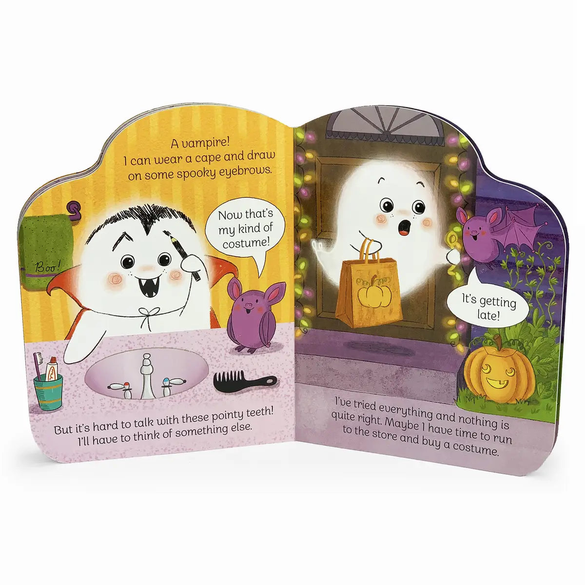 It's Halloween night and the moon is shining bright for trick-or-treaters everywhere! Help Little Ghost find the perfect costume for trick-or-treating. What should the funny little ghost be? A witch? A monster? How about a scary vampire?